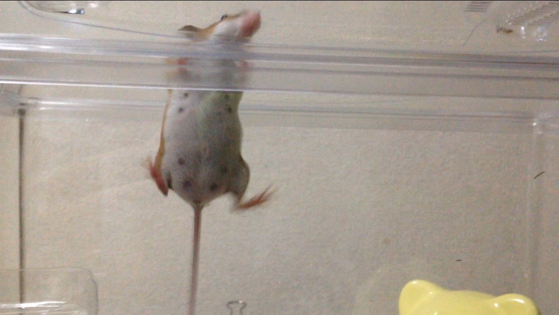 ケージを新しくしたら、ケージの淵にしがみついて横移動をし始めた。
