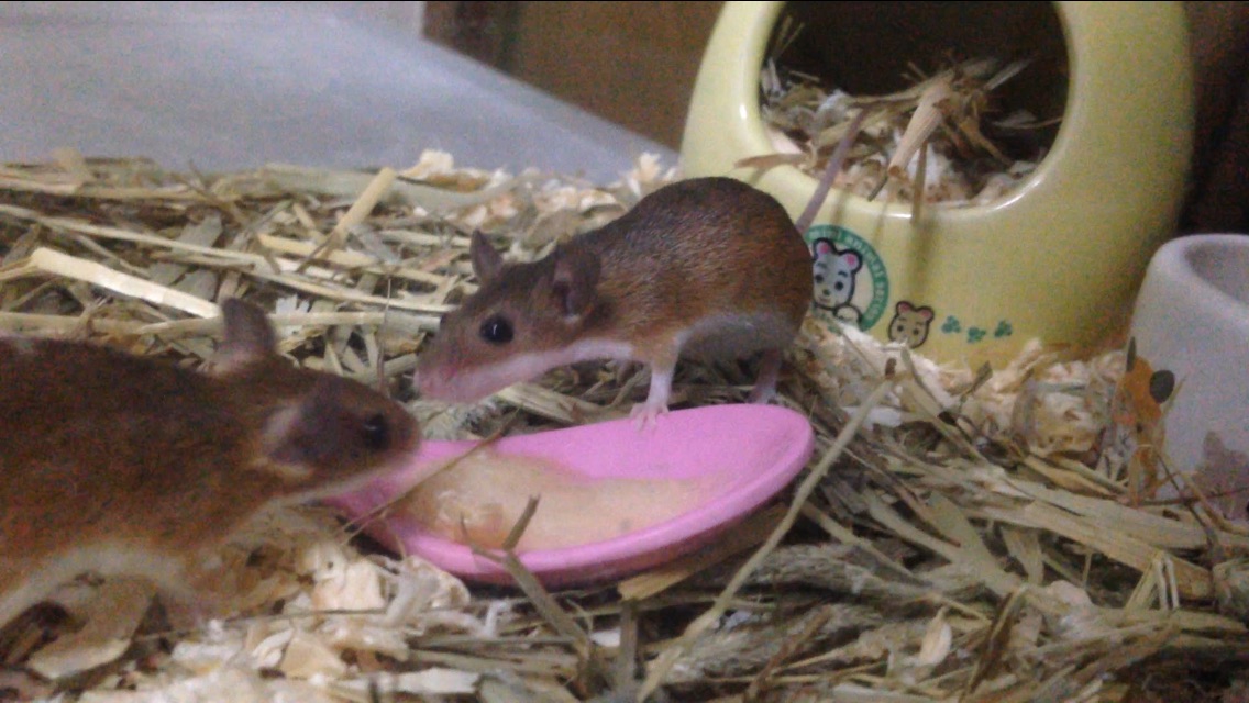 チビネズ達の間でミルワームの奪い合いが発生!